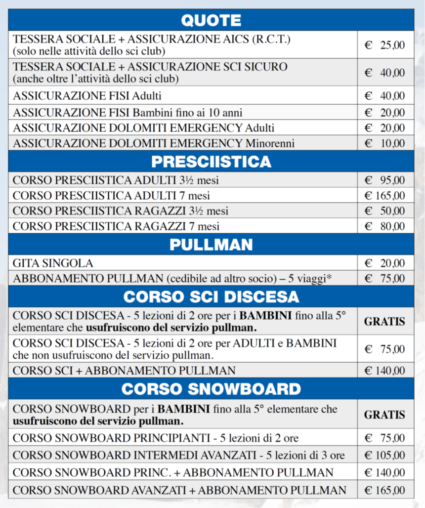– usufruiscano degli autobus organizzati nei giorni previsti per la scuola sci.